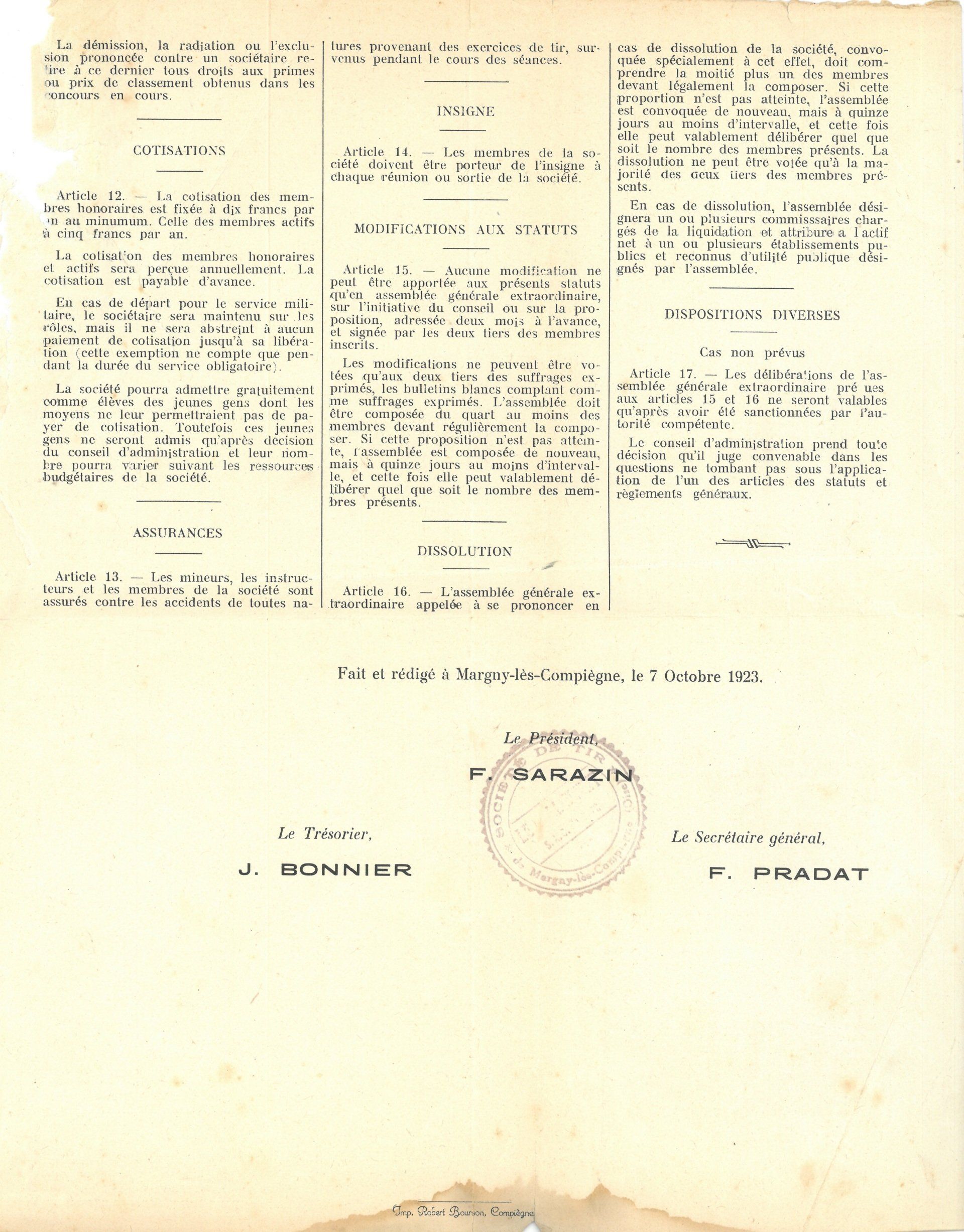 Le premier Président actif fut Monsieur Octave François BUTIN, député Maire de Margny-lès-Compiègne.