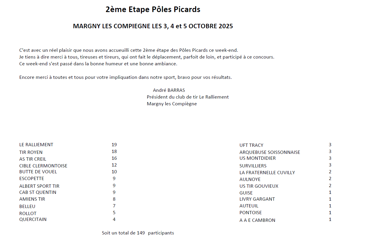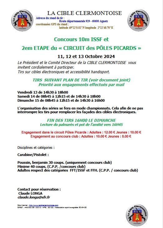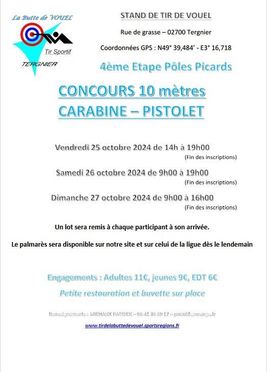 Pour plus de renseignements, voir affichage au stand 10m ou sur le site de la Ligue Régionale de Tir Picardie, rubrique Pôles Picards.
