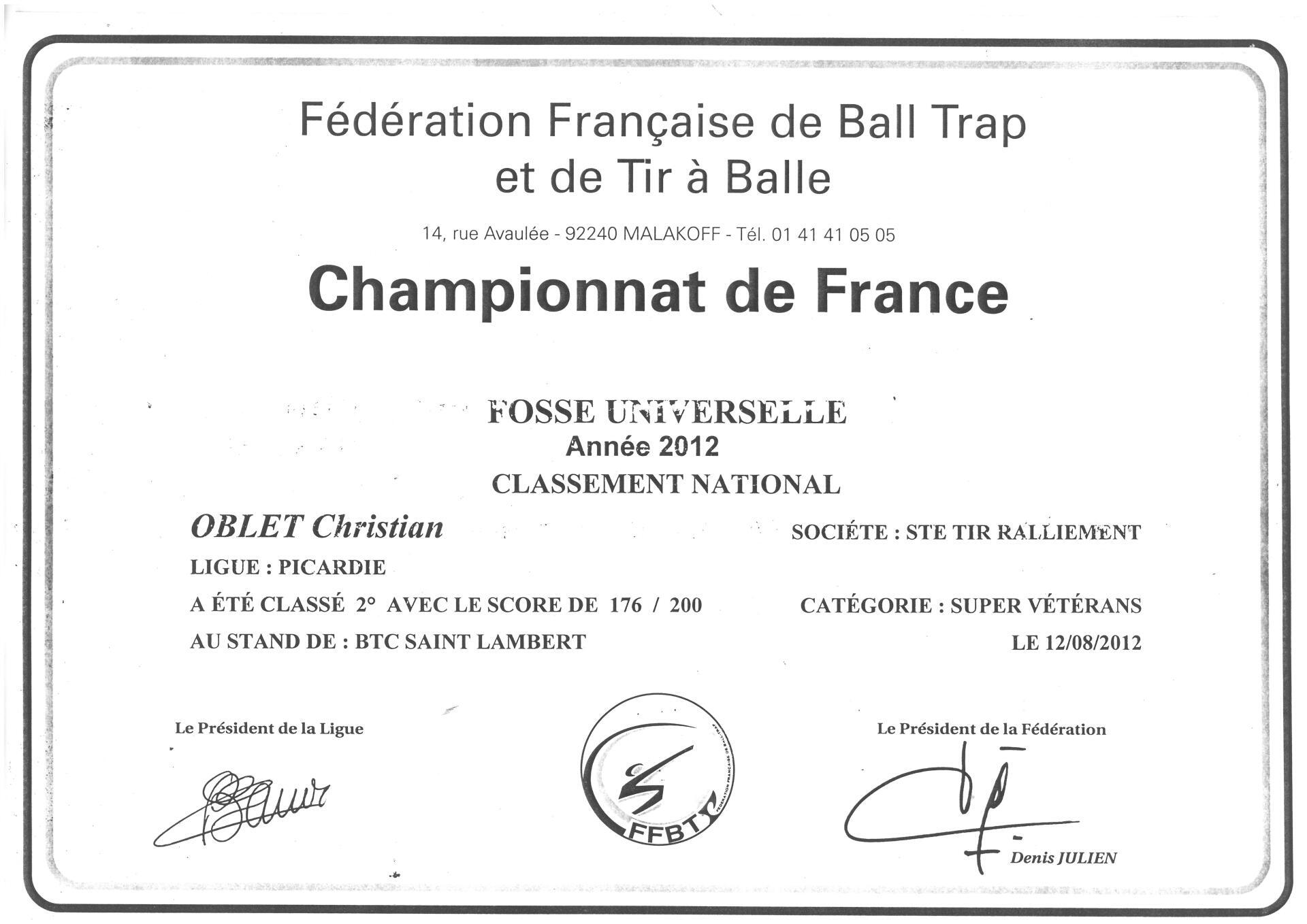 - Champion de France 2012 - Fosse Universelle - Sénior B