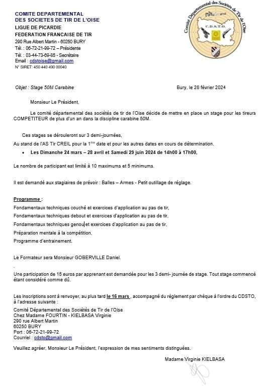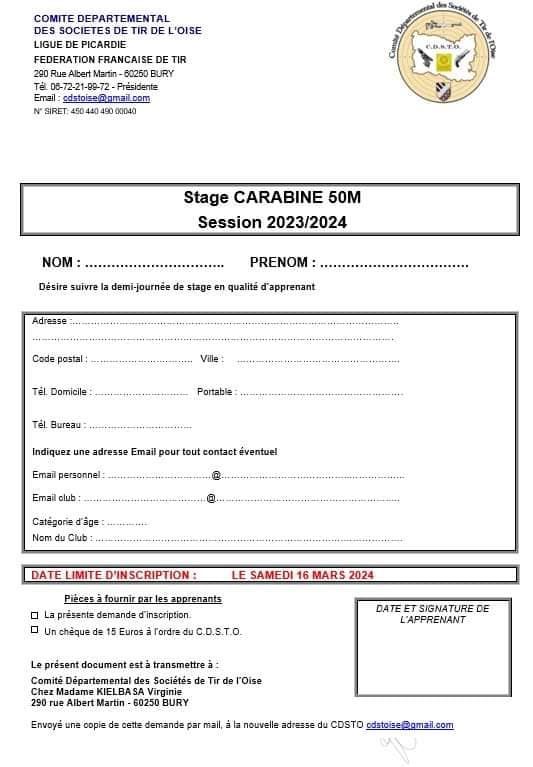 Le CDSTO a le plaisir de vous informer que nous organisons pour nos compétiteurs Carabiniers 3 demi-journées de stage.